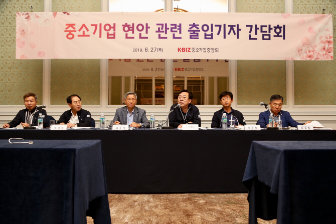 중소기업중앙회(이하 중기중앙회)는 27일 제주 롯데호텔에서 열린 중소기업 리더스포럼에서 ‘중소기업 현안관련 기자간담회’를 개최했다. 이 자리에는 김기문 중기중앙회 회장을 비롯해 금형·표면처리·주유소 등 최저임금 영향을 즉각적으로 받는 업종별 협단체 대표들이 참석해 노동현안을 중심으로 간담회를 진행했다.