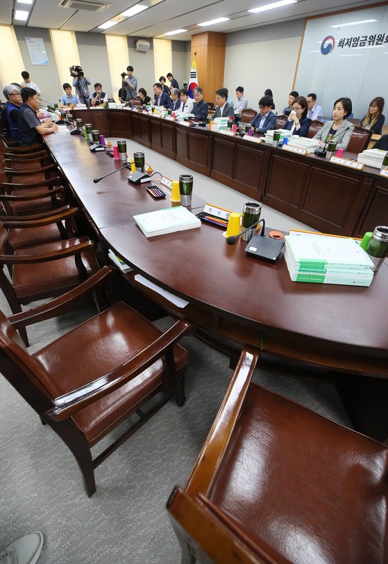 지난해 최저임금 결정 과정에서 사용자 위원은 전원회의를 보이콧했다. 그 바람에 공익위원과 근로자 위원끼리 전년보다 10.9% 인상된 시급 8350원으로 결정했다. 사용자 위원으로선 이런 상황이 재현되는 게 우려될 수밖에 없다.
