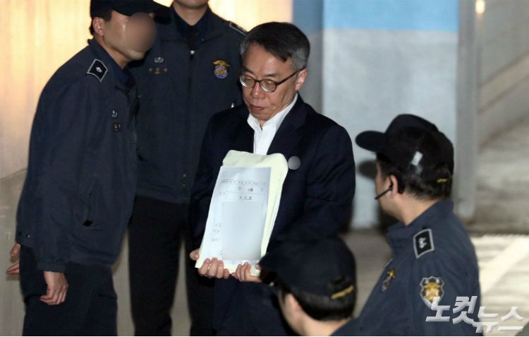사법행정권 남용 의혹의 핵심 인물로 꼽히는 임종헌 전 법원행정처 차장이 19일 오전 서울 서초구 중앙지법에서 열린 '사법 농단' 관련 2회 공판에 출석하고 있다. (사진=황진환 기자) |