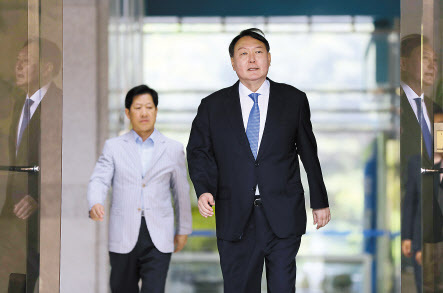 신임 검찰총장 후보자로 지명된 윤석열 서울중앙지검장이 지난달 17일 점심식사를 위해 서울 서초구 서울 중앙지검을 나서고 있다. [연합] |