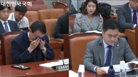 여상규 국회법제사법위원장이 두 의원에게 "발언권을 얻고 말을 하라"고 지적하자 다시 김종민 의원이 "어떻게 윤석열이 죽인 겁니까 말이 됩니까"라고 반발했다. 여 위원장이 "왜 과거 정부 이야기를 끄집어내냐"며 고성이 오갔다.