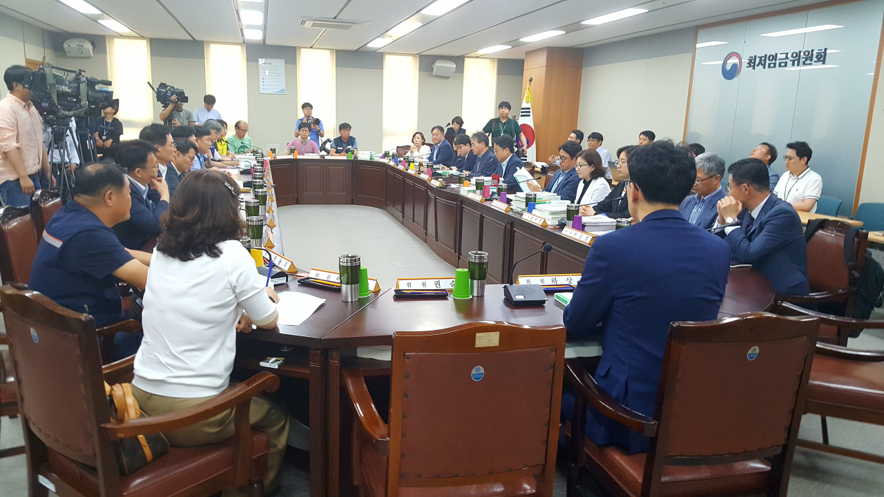 회의에는 사용자위원 8명과 공익위원 9명이 참석했다. 사용자위원 가운데 불참을 계속해온 소상공인 대표 2명도 복귀했다.