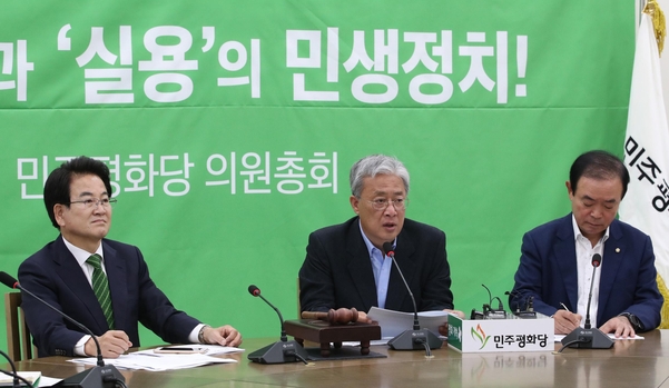민주평화당 유성엽 원내대표가 9일 당 의원총회에서 발언하고 있다./연합뉴스 |