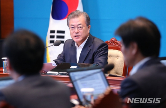 【서울=뉴시스】전신 기자 = 문재인 대통령이 13일 청와대 여민관에서 영상 수석보좌관회의에서 모두발언하고 있다. 2019.05.13. photo1006@newsis.com |