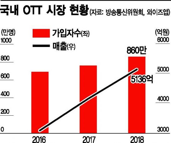 닐슨코리안클릭의 지난 5월 모바일 앱 이용 현황에 따르면 SK텔레콤의 '옥수수' 월단위 이용자는 약 323만명, 지상파 3사의 '푹' 이용자는 약 93만명으로 집계된다. 하지만 '옥수수' 가입자 대부분이 스마트폰 요금제에 포함된 무료 서비스를 이용하고 있어 실제 유료 가입자 수는 여기에 못 미친다. 아직은 넷플릭스가 콘텐츠의 양과 질, 가입자 수까지 모두 앞서 있는 상황이다.