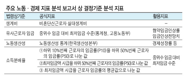 아울러 객관적 데이터를 기반으로 최저임금을 결정할 수 있는 구조를 만들어야 한다는 제언이 이어졌다. 최저임금법 4조에 따르면 최저임금을 결정할 때 기준으로 삼아야 할 지표는 근로자의 생계비, 유사근로자의 임금, 노동생산성 및 소득분배율 등이다. 하지만 실제 심의 과정에서 어떤 지표를 얼마나 고려했는지 등에 대한 언급은 전혀 알려지지 않는다.