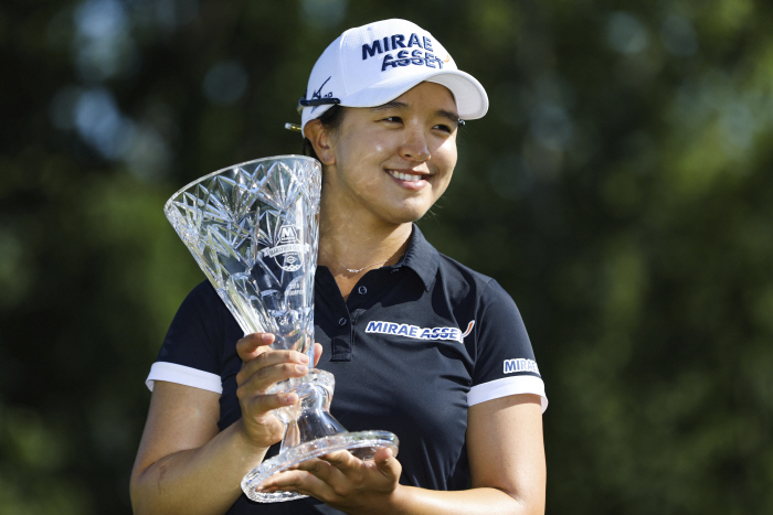 Sei Young Kim holds the trophy after winning the Marathon LPGA Classic tournament on Sunday July 14, 2019, at Highland Meadows Golf Club in Sylvania, Ohio. (Rebecca Benson/The Blade via AP) |