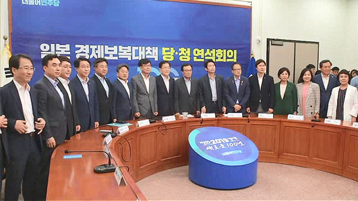 청와대와 민주당은 연석회의를 열어 일본 보복조치에 대한 총력 대응을 다짐했습니다.