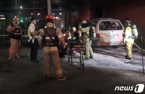 19일 새벽 3시 24분쯤 서울 종로구 주한일본대사관 앞에 세워진 승합차에서 불이나 70대 남성 1명이 크게 다쳤다. 경찰과 소방당국에 따르면 이 남성은 일본대사관이 입주한 건물 앞 인도에 부탄가스와 휘발유 등 인화성 물질을 실은 승합차를 세운 뒤, 차 안에서 불을 붙인 것으로 알려졌다. (종로소방서 제공) 2019.7.19/뉴스1 |