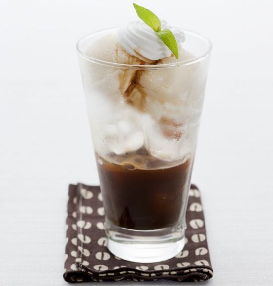 설탕 시럽 20cc, 얼음 약간, 에스프레소(또는 인스턴트 커피) 1잔, 바닐라 아이스크림 1스쿠프, 휘핑크림
