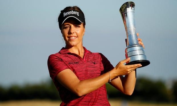 조지아 홀이 지난해 브리티시 여자오픈 우승 후 트로피를 들고 포즈를 취하고 있는 모습. 홀은 “2개월 전 트로피를 분실했다”고 밝혔다./로이터 |