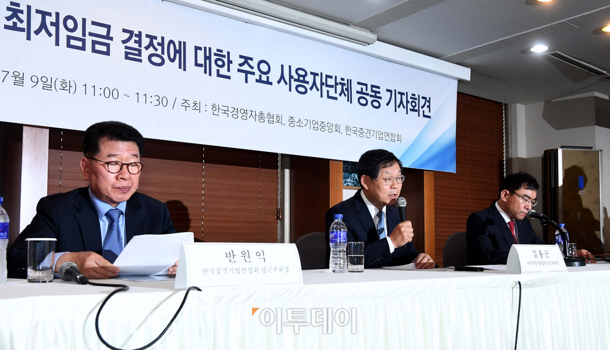 1일 중소기업중앙회와 한국경영자총협회는 이날 입장문을 내고 사용자위원 전원이 제14차 전원회의 소집을 요청한다고 밝혔다. 사용자위원들은 “이제는 경제․사회의 다양한 변화를 반영하지 못하는 낡은 최저임금제도를 합리적으로 개선해 나가는데 노․사․공 모두 힘을 모아야 할 시점”이라며 “최저임금이 기업이 감당하기 어려울 정도로 급격히 인상되고 상대적 수준도 중위임금의 60%를 넘어서 세계 최상위권에 도달하면서 제도적 문제점이 크게 부각되고 있다”고 주장했다.