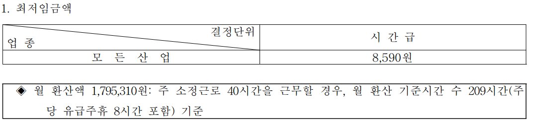 고시에는 월 노동시간 209시간을 적용한 월 환산액 179만5310원을 병기했다. 업종과 상관없이 모든 사업장에 동일하게 적용한다는 점도 명시했다.