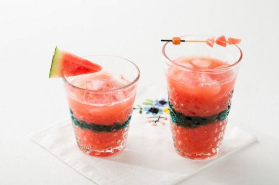 3. 컵에 수박 에이드를 담고 민트로 장식한다. |