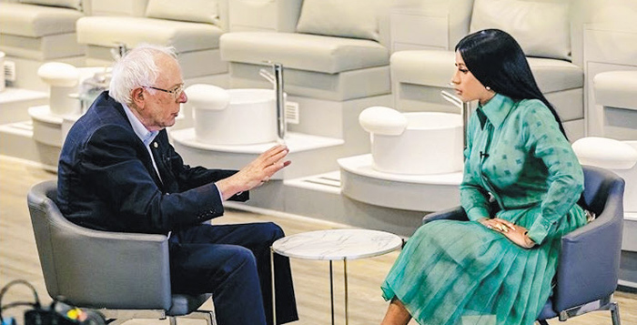 15일(현지 시각) 폭스뉴스와 AFP통신 등에 따르면 카디 비는 지난달 미시간주 디트로이트의 한 네일숍에서 버니 샌더스와 일자리 문제 등에 대한 이야기를 나눴다. 카디 비가 수백만 소셜미디어 팔로어의 요구에 따라 만남을 요청한 것으로 알려졌다.