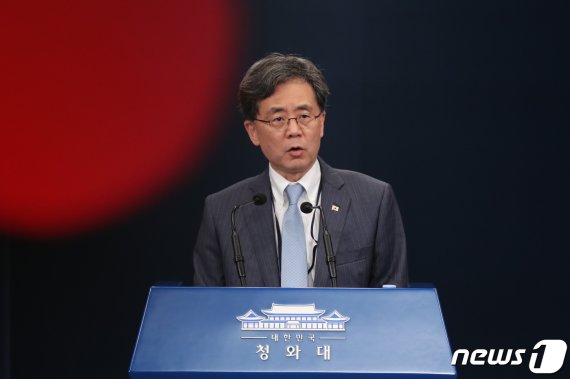 김현종 국가안보실 제2차장이 23일 오후 서울 종로구 청와대 춘추관에서 지소미아 종료 관련 브리핑을 하고 있다. 뉴스1 |