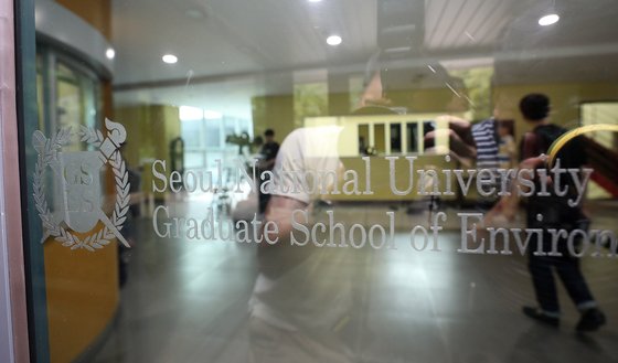 압수수색을 벌이고 있는 서울 관악구 서울대 환경대학원 행정실 앞. [뉴스1] |