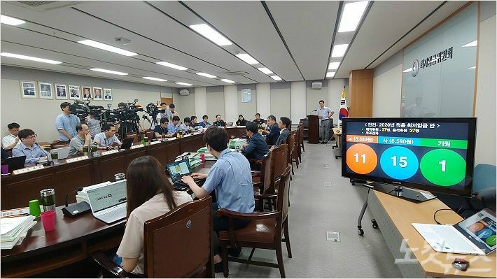 법률원은 "2020년 최저임금을 고시하면서 위 4가지 결정기준을 전혀 고려하지 않았다"며 "'근거가 있는 것은 아니다'라고 자인한 사용자안을 단 한 번의 토론이나 심의 없이 불과 6분 만에 표결을 강행한 최저임금위원회의 결정을 그대로 공표했다"고 지적했다.