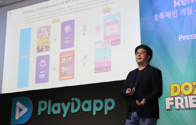 17일 플레이댑은 서울 서초구 엘타워에서 기자간담회를 열고 차세대 블록체인 게임 서비스 플랫폼 ‘플레이댑(PlayDapp)’ 전략 발표회를 진행했다.
