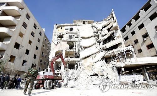 지난 2015년 이스라엘의 공습으로 무너진 시리아 내 친이란 세력 건물 |