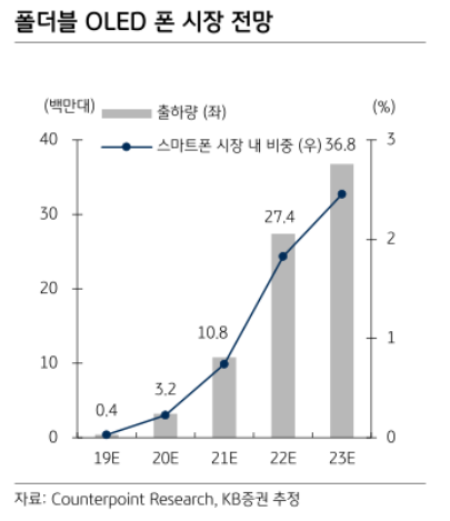 이들은 “갤럭시 폴드의 초기 완판 이유는 한정된 물량의 고가 마케팅 영향도 있지만 더욱 큰 요인은 예상을 상회하는 활용성과 완성도 떄문”이라며 “2020년 삼성전자는 아웃폴딩 타임, 클램 쉘 타입 등 다양한 폼팩터와 가격대의 폴더블 폰 출시가 전망된다”고 분석했다.