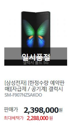 [헤럴드경제=박세정 기자] 삼성전자 갤럭시 폴드가 2차 사전예약에서도 온라인 유통채널에서 완판을 기록하며 흥행 행진을 이어가고 있다.