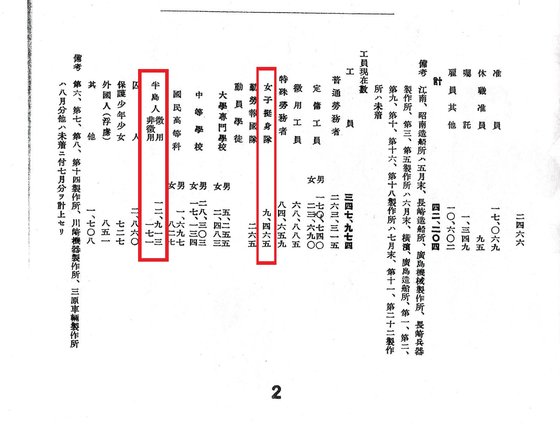다카하시 대표가 공개한 자료는 미쓰비시가 1982년 복간한 사보로 전체 계열사의 40년 역사가 기록됐다. 미쓰비시는 사보에서 1945년 8월 당시 총 34만7974명이 회사에 소속됐고 조선인을 '징용 1만2913명'과 '비징용 171명'이라고 기록했다. '여자정신대 9465'명이라고 기록된 문구도 확인된다.