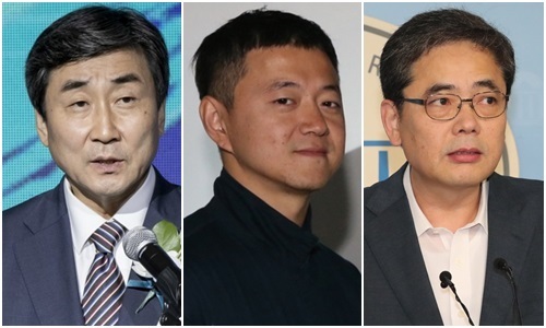 (왼쪽부터) 이종걸 더불어민주당 의원, 문준용씨, 곽상도 자유한국당 의원. 연합뉴스 |