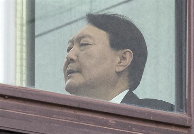 윤석열 검찰총장이 27일 점심을 먹기 위해 서울 서초구 대검찰청 구내식당으로 이동하고 있다.연합뉴스 |