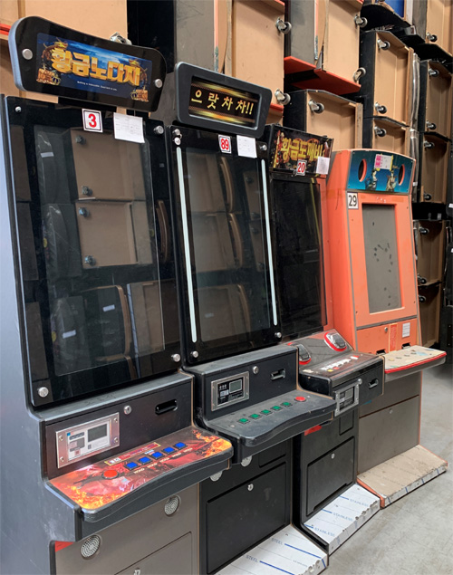 경기 안성시 서운면 한국환경공단 창고에 쌓여있는 불법 사행성 게임기 이름들이다. 게임산업진흥에 관한 법률(게임산업법) 위반에 따라 수사당국에 압수된 게임기다. 올 8월까지 전국의 한국환경공단 창고 13곳에 쌓인 게임기는 8만7000개에 달한다.