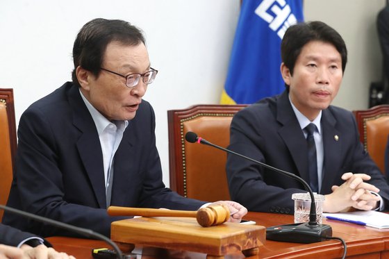 이해찬 더불어민주당 대표가 2일 오전 서울 여의도 국회에서 열린 최고위원회의에서 모두발언을 하고 있다. [뉴스1] |