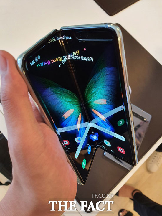 한편, 지난 5일 정식 출시된 갤럭시 폴드는 약 50% 얇은 새로운 복합 폴리머 소재 4.6형 커버 디스플레이를 적용해 기존 스마트폰과 같이 전화나 문자, 다양한 애플리케이션(앱)을 한 손으로 편하게 사용할 수 있도록 했다.