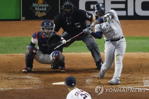 (서울=연합뉴스) 장현구 기자 = 미국프로야구(MLB) 홈런 군단 뉴욕 양키스가 대포 2방을 앞세워 휴스턴 애스트로스 우완 베테랑 투수 잭 그레인키를 무너뜨렸다.