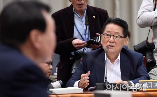 [아시아경제 원다라 기자] 대안신당(가칭) 소속 박지원 의원이 17일 국정감사장에서 윤석열 검찰총장 벌인 설전과 관련, "졌지만 속내로는 이겼다"고 평가했다. 그는 "윤 총장이 (한국당 의원들이) 검찰소환에 응하지 않으면 정경심 교수처럼 기소하겠구나 하는 생각을 했다"면서 "목적을 달성했다"고 설명했다.