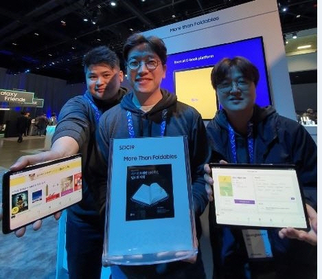 [이데일리 이재운 기자] 삼성의 차세대 폴더블(Foldable·접히는 형태) 스마트폰에서 보는 전자책은 어떤 느낌일까? 전자책 서비스 업체 ‘밀리의 서재’가 29일(이하 현지시간) 미국 새너제이에서 막을 올린 삼성 개발자 대회(SDC)19에서 대화면 기기(디바이스)를 위한 독서 콘텐츠 앱 환경을 공개했다.