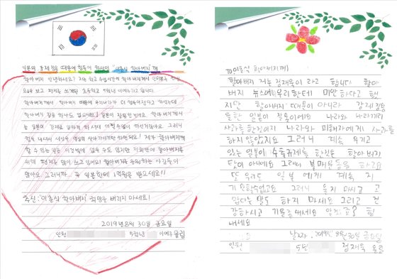 인천 한 초등학교 학생들이 이춘식 할아버지에게 쓴 편지 [민변 제공] |