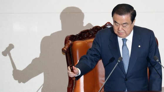 문희상 국회의장이 29일 오전 국회 본회의장에서 개회를 선언하고 있다. 변선구 기자 |
