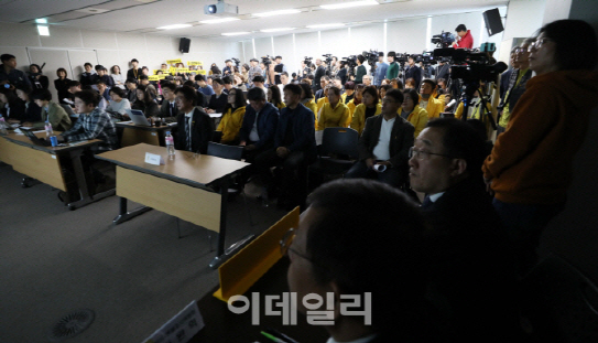 사회적참사 특조위 관계자들이 31일 오전 서울 중구 포스트타워에서 세월호 참사 구조수색 적정성 관련 조사내용 중간발표를 듣고 있다. (사진= 뉴시스) |