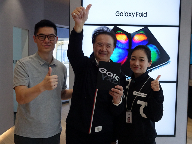 8일(현지시간) 오전 중국 상하이 난징둥루(南京東路)에 있는 삼성전자의 중국 최대 플래그십 매장에서 한 고객이 갤럭시 폴드를 사고 난 뒤 엄지를 들어 보이고 있다. (사진= 연합뉴스) |