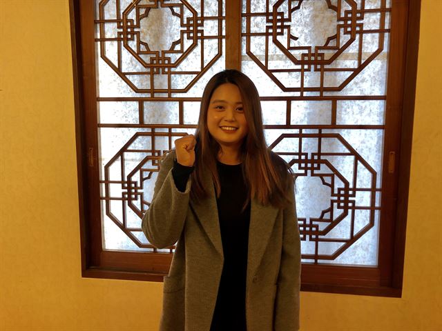 최혜진이 14일 서울 종로구 한 식당에서 열린 기자간담회에서 포즈를 취하고 있다. YG스포츠 제공 |