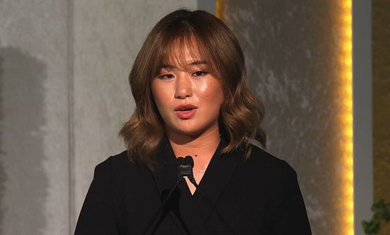 22일 열린 LPGA 어워즈에서 신인상 수상 소감을 밝힌 이정은6. [사진 LPGA 페이스북 캡처] |