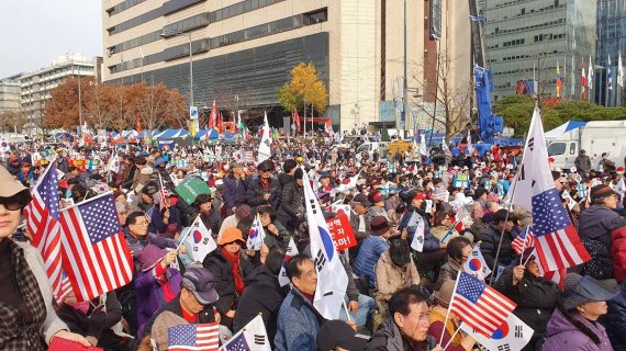 이날 정오께부터 태극기를 든 시민들은 삼삼오오 광화문 광장으로 모였다. 문재인하야범국민투쟁본부(범투본) 등이 개최한 '대한민국 바로세우기 국민대회'에 참가하기 위해서였다.