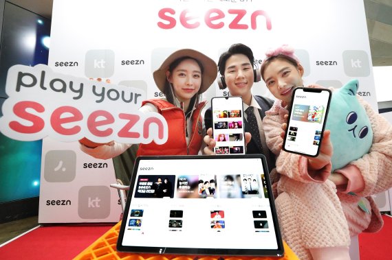 KT 모델들이 새로운 모바일 미디어 서비스 시즌을 소개하고 있다. KT 제공 |