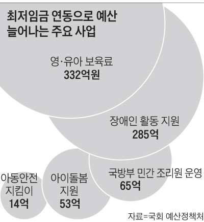복지부의 장애인 활동 지원금과 장애인 일자리 지원 예산도 인건비가 늘면서 각각 285억원과 43억원 증가하는 것으로 추산됐다.