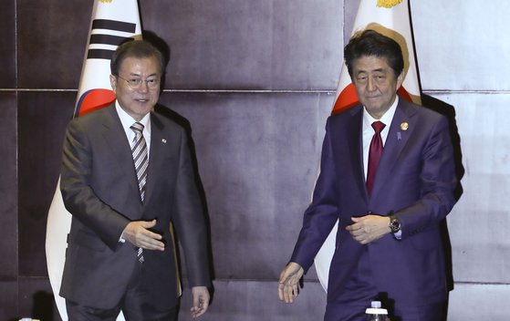 앞서 이날 오전 열린 한·일 외교 장관회담은 정상회담의 예고편이었다. 강경화 외교부 장관과 모테기 도시미쓰(茂木 敏充) 일본 외무상은 회담 의제 조율을 위해 만났지만 강제징용 문제에서 강하게 부딪혔다고 한다.