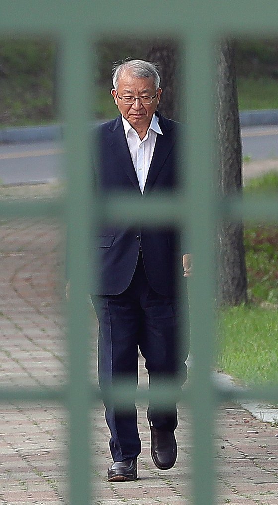 '사법농단 의혹' 정점으로 지목돼 구속상태로 재판을 받는 양승태 전 대법원장이 지난 7월 22일 보석을 허가받고 경기도 의왕시 서울구치소를 나서고 있다. [뉴스1] |