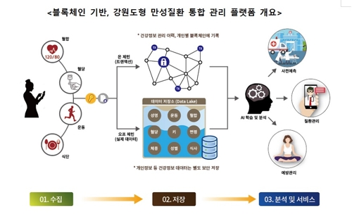 도는 보건소, 한림대학 병원 등과 평소 병원 방문이 어렵고 관리 사각지대에 놓인 심뇌혈관 만성질환자를 대상으로 블록체인 기반 혈당·혈압 관리체계 구축, 인공지능 기반 분석 및 예측 서비스 등을 제공할 계획이다.