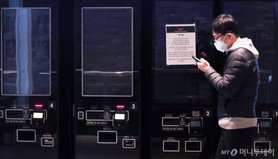 신종 코로나바이러스 감염증 국내 5번째 확진자가 거쳐간 장소로 확인된 서울 성북구 성신여대CGV에서 2일 오전 관계자가 점검을 하고 있다./사진=김창현 기자 |