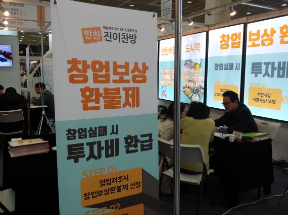 지난 1월 3일 서울 강남구 영동대로 코엑스에서 열린 제54회 프랜차이즈창업박람회 한 업체 부스에서 창업희망자들이 상담을 받고 있다. 사진=김성호 기자 |