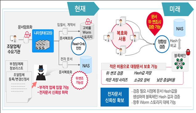 2002년 전자정부 사업의 일환으로 구축된 나라장터는 조달업무 전 과정을 온라인으로 처리하는 범정부 플랫폼이다. 나라장터는 그동안 거래규모, 등록 수요기관, 등록 조달기업, 전자공고 건수 등에서 양적으로 2~3배가량 성장했지만 이에 따라 장애 급증, 속도 저하 등의 문제를 겪어왔다. 조달청은 블록체인, AI 등 최신정보통신(ICT) 기술을 이용해 이같은 문제를 해결한 차세대 나라장터를 구축한다는 방침이다.